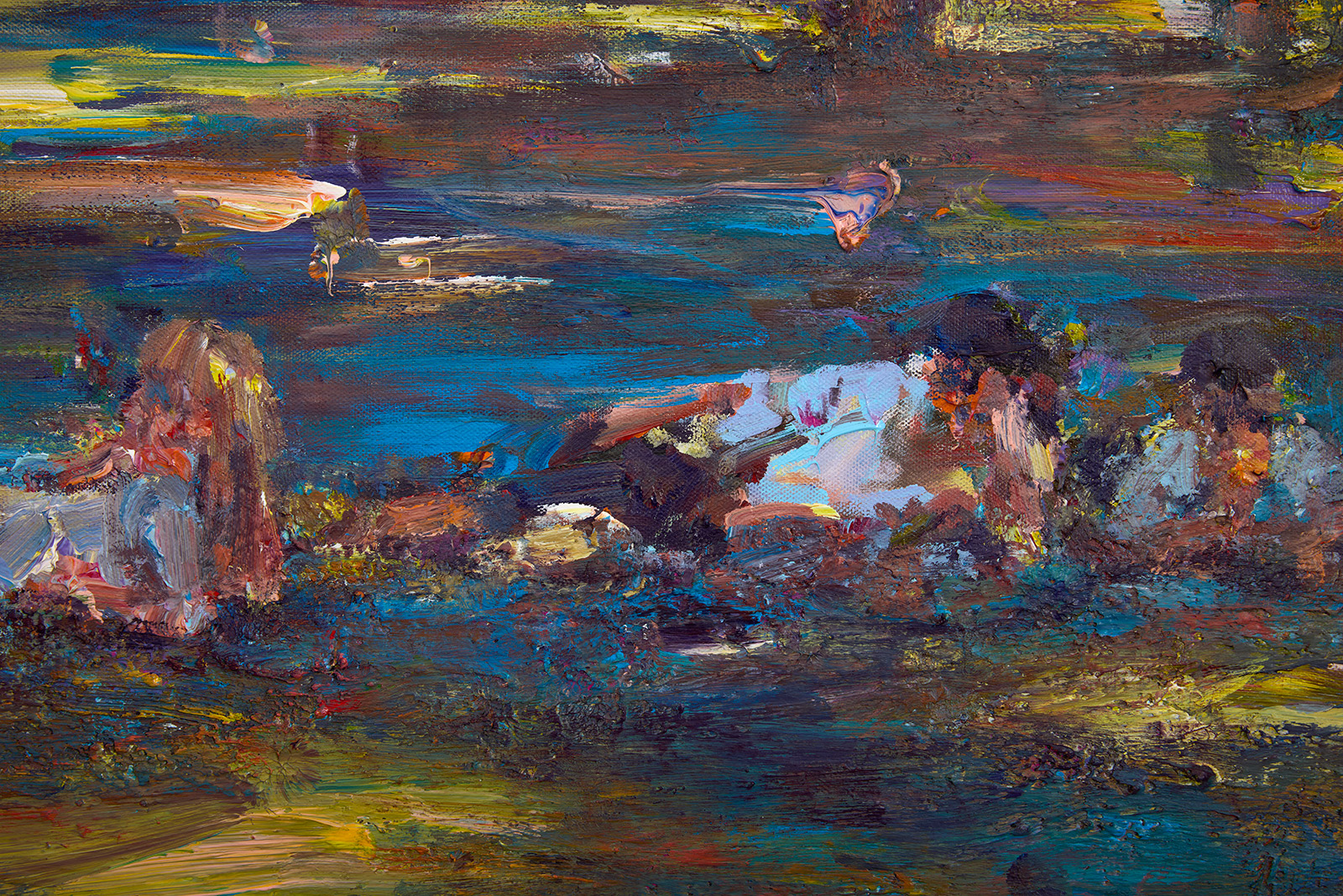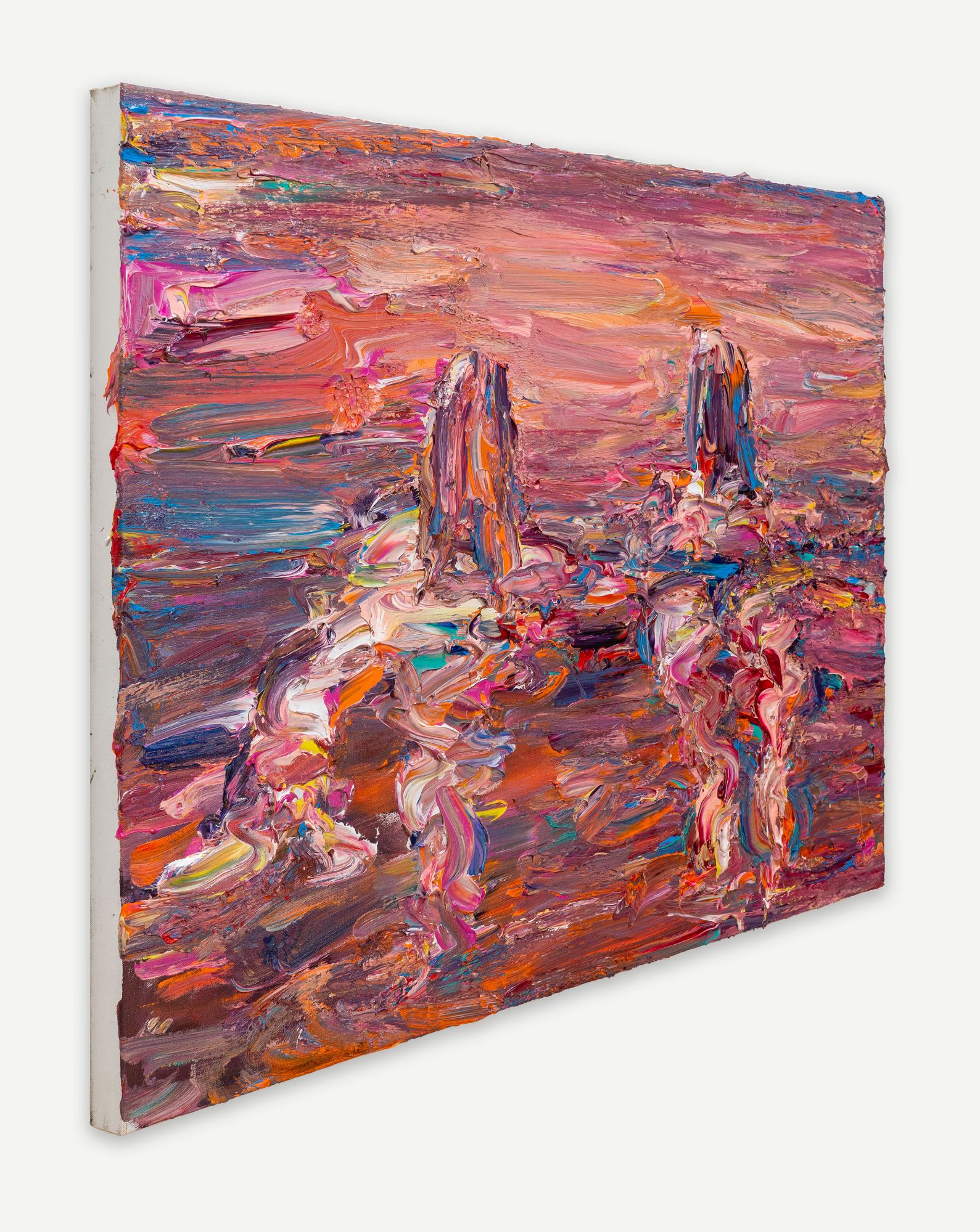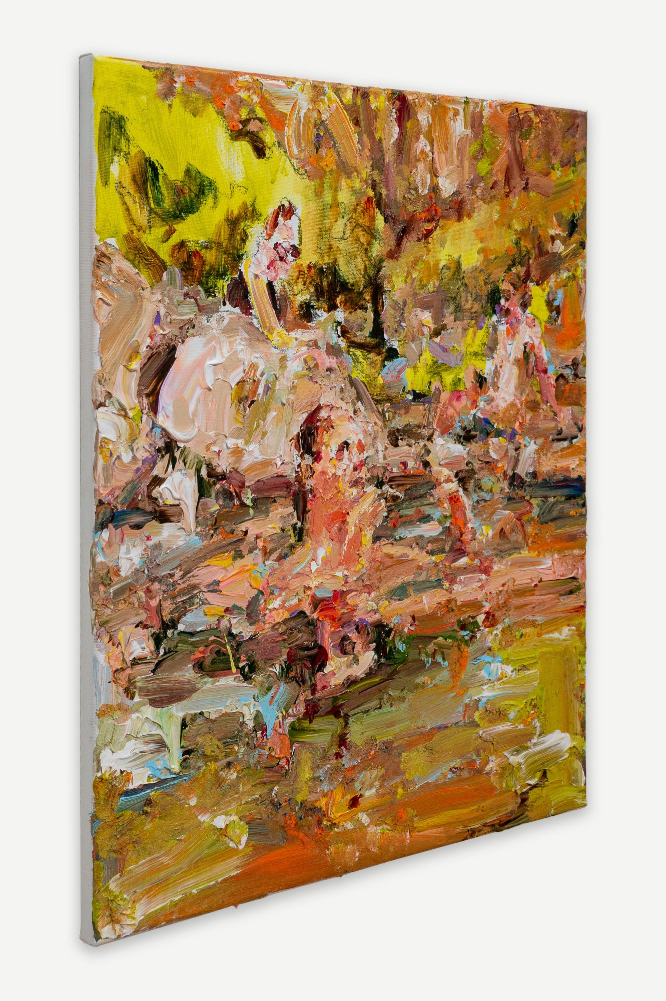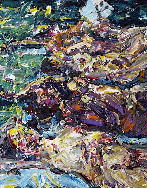 The focus of Chrissy Angliker’s work lies in creating a balanced relationship between the controllable and uncontrollable. Chrissy depicts that concept through the relationship she is cultivating with her medium of paint. For every intentional mark, the nature of the medium is challenging it. The artist is searching for a sense of grace in the transition between these two opposing elements. The theme of her work arose from her feeling of life itself being a balance between control and chaos. “As people, we have intentions, but must anticipate the intervention of outside forces beyond our power.”The finished paintings capture the relationship created by aiming to balance these extremes to capture a whole, and frank representation of the subject.
