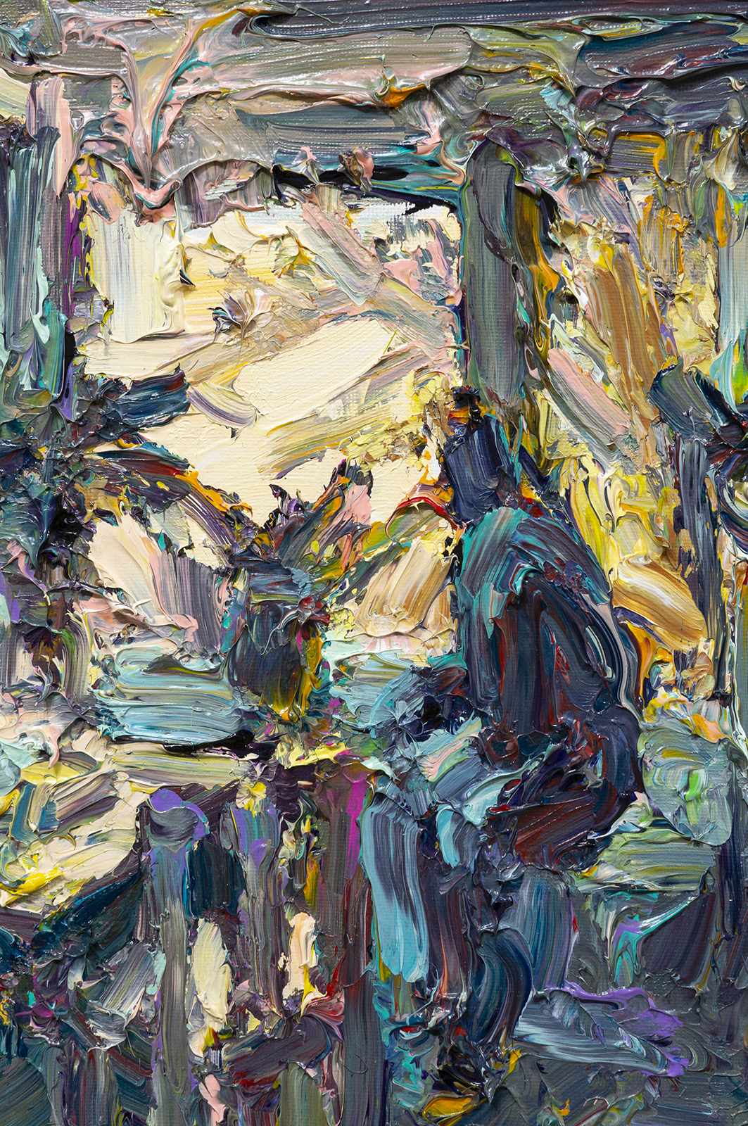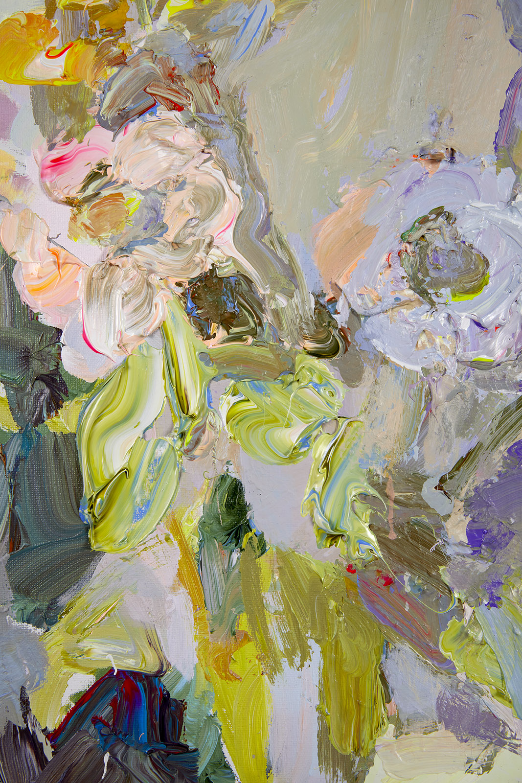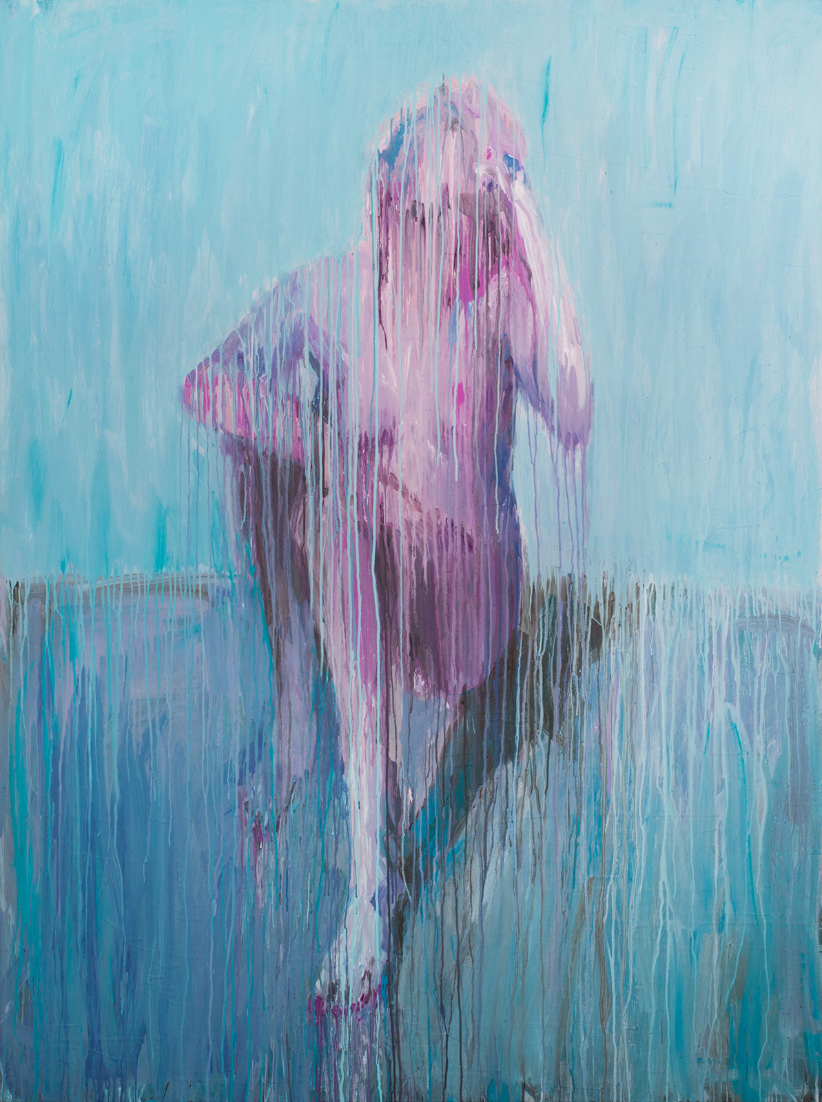 The focus of Chrissy Angliker’s work lies in creating a balanced relationship between the controllable and uncontrollable. Chrissy depicts that concept through the relationship she is cultivating with her medium of paint. For every intentional mark, the nature of the medium is challenging it. The artist is searching for a sense of grace in the transition between these two opposing elements. The theme of her work arose from her feeling of life itself being a balance between control and chaos. “As people, we have intentions, but must anticipate the intervention of outside forces beyond our power.”The finished paintings capture the relationship created by aiming to balance these extremes to capture a whole, and frank representation of the subject.