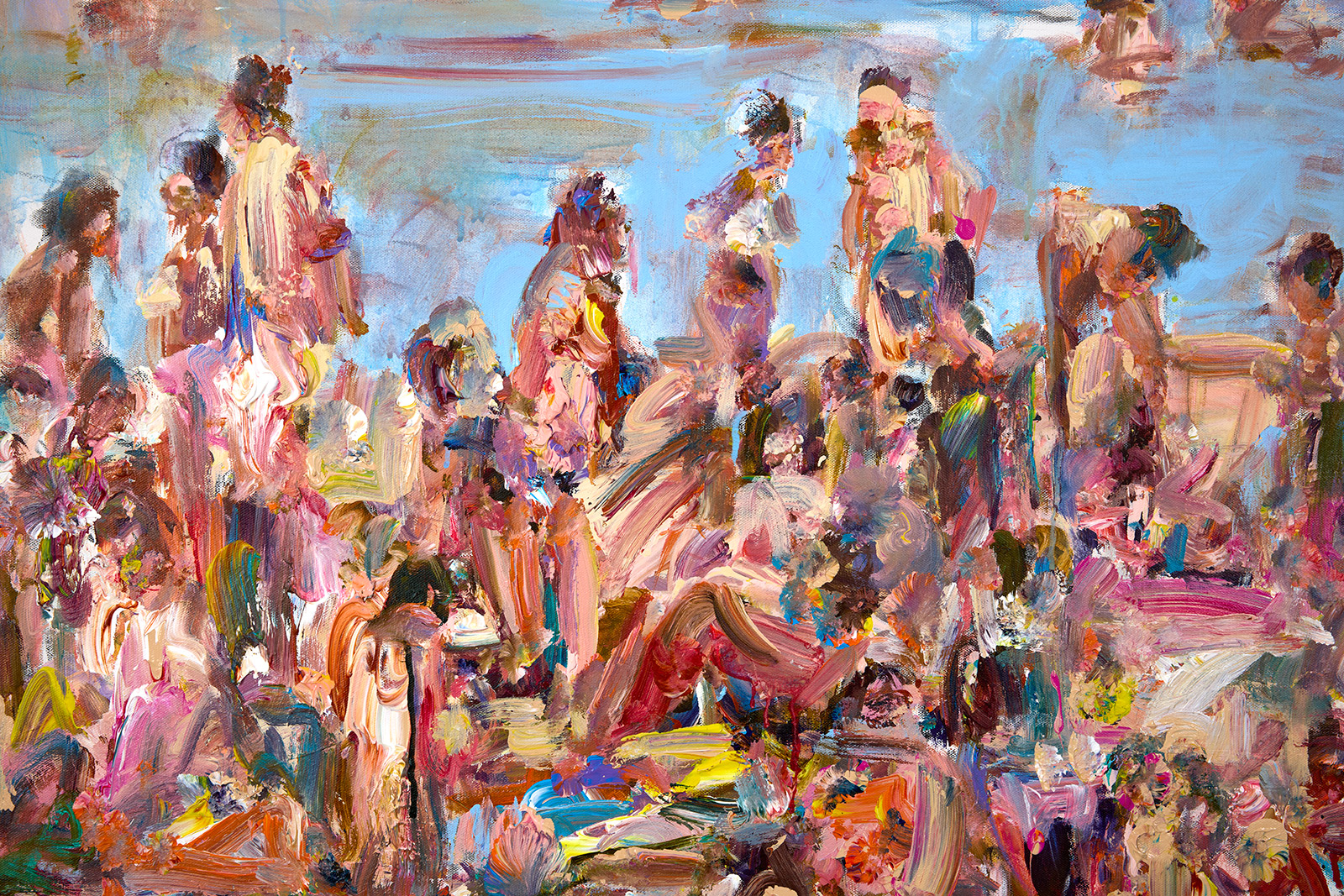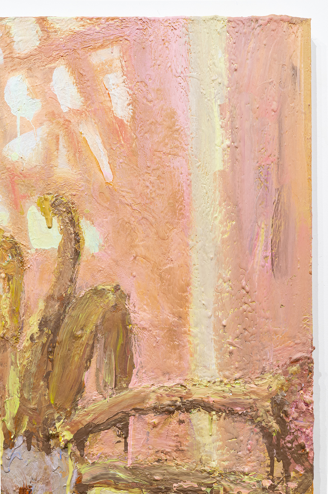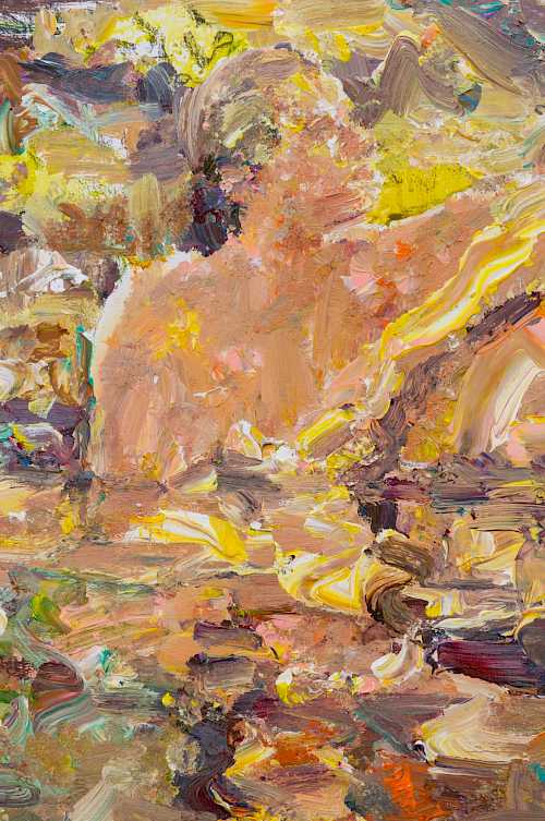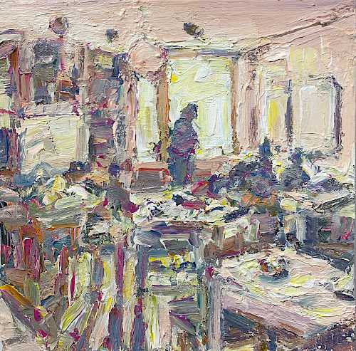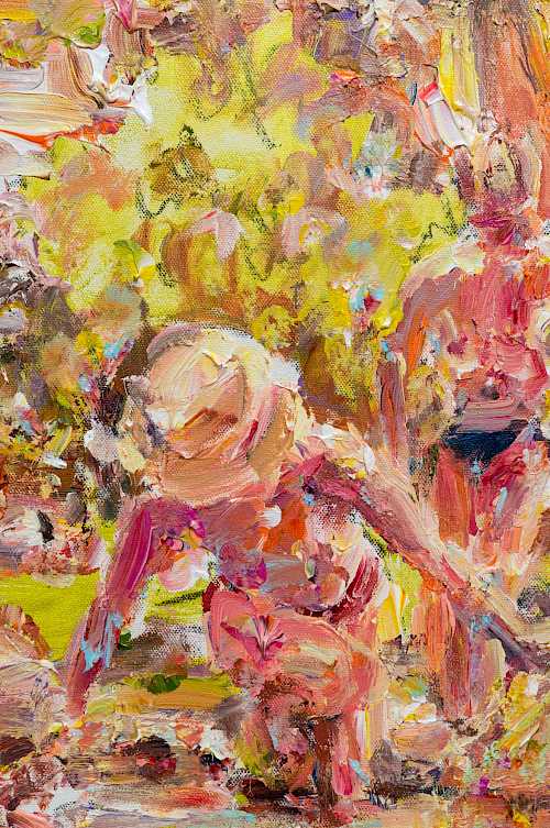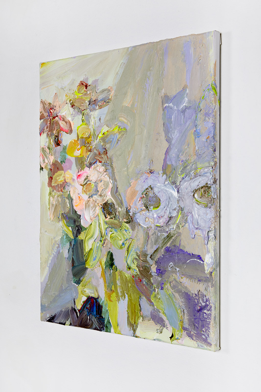The focus of Chrissy Angliker’s work lies in creating a balanced relationship between the controllable and uncontrollable. Chrissy depicts that concept through the relationship she is cultivating with her medium of paint. For every intentional mark, the nature of the medium is challenging it. The artist is searching for a sense of grace in the transition between these two opposing elements. The theme of her work arose from her feeling of life itself being a balance between control and chaos. “As people, we have intentions, but must anticipate the intervention of outside forces beyond our power.”The finished paintings capture the relationship created by aiming to balance these extremes to capture a whole, and frank representation of the subject.